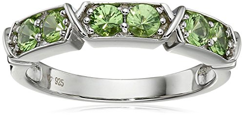 This ring features 0.68cttw 3mm Tsavorite six-stone design accented with a crisscross boxed design