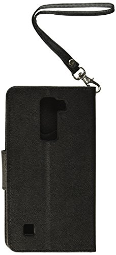 Asmyna Wallet Case for LG K7 Tribute 5 - Retail Packaging - Black Pattern/Black Liner