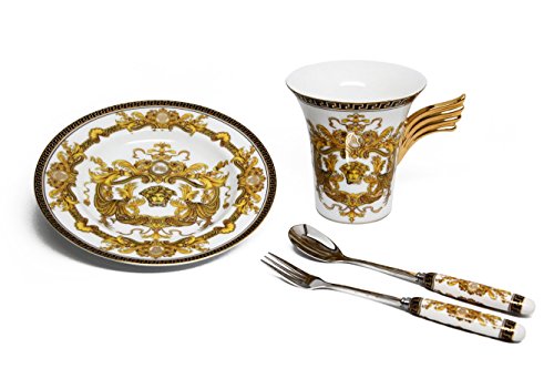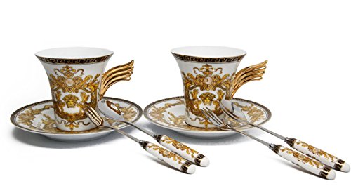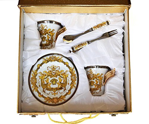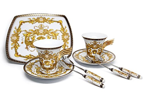 -. Brand : Royal Porcelain -. Color : Gold, White, Black -. EAN : 0791810908067 -. Feature : Greek Pattern Medusa Series / Includes: 2 Teacups, 2 Saucers, 2 Forks, 2 Spoons and Square Dessert Plate / High quality porcelain, 24K gold-plated / Comes with beautiful hard cover gift case -. Label : Royal Porcelain -. Manufacturer : Royal Porcelain -. ProductGroup : Kitchen -. ProductTypeName : KITCHEN -. Publisher : Royal Porcelain -. Studio : Royal Porcelain -. Title : Royal Porcelain Tea or Cofee 9-Piece White SET with Square Dessert Plate, Greek Pattern Medusa Series, 24K Gold-plated, Service for 2 -. UPC : 791810908067