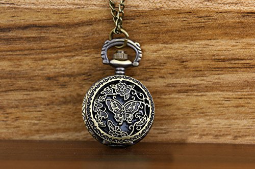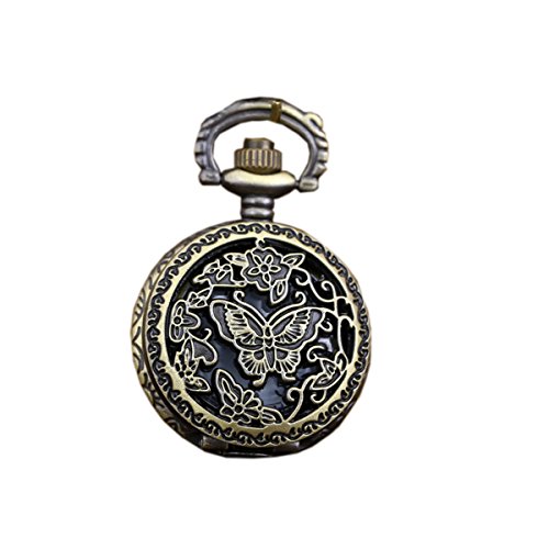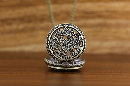 -. Feature : Vintage pocket watch carved with butterfly and flowers, the watch case with patterns. The butterfly Was praised as the flying flowers is a symbol of happiness, love, and it can give a person with inspiration, intoxicated and yearning. / The design of the pocket watch joined the elements of restoring ancient ways, So the pocket watch design is more mysterious and more attractive / vintage hollow pocket watch is the best gift for your girl friends or yourself / Watch Diameter: around 47mm Chain Length: about 400 mm / White dial with black hour, minute, and second hand on ornate Arabic numerals. Without box.