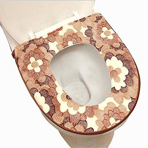 Anyprize Bathroom Warmer Washable Cloth Toilet Seat Cover Pads (Coffee)