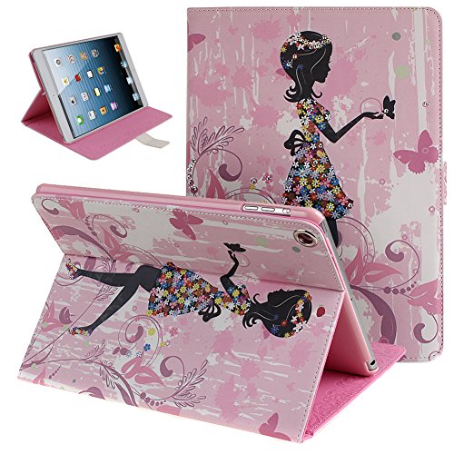 Case for iPad Air,Cover for iPad Air,Case for iPad 5,Leather Case for iPad Air,Flip Case for iPad Air,Case with Stand for iPad Air,NSSTAR Butterfly Fairy and Flower Inlaid Shiny Glitter Diamond Pu Leather Flip Protective Case Cover with Stand for Apple Ipad Air iPad 5 (Dresses Grils)