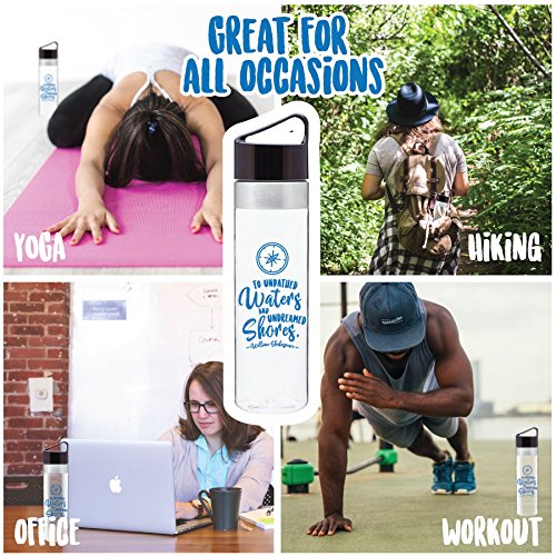 Inspire a Life of Adventure - This motivational water bottle with quote will remind you to take the road less traveled and find adventure in your daily life – “To Unpathed Waters and Undreamed Shores” – William Shakespeare.