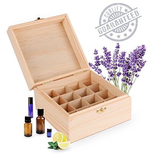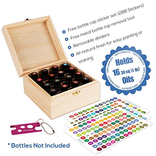 Wooden Essential Oil Box - Holds 16 30ml Essential Oil Bottles - Includes Labels & Bottle Opener Tool - Great For Storing Now & Other 1 Ounce Bottles