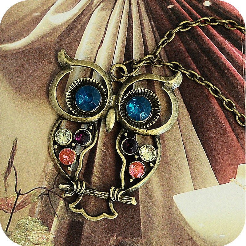Korean jewelry fluorescent hollow owl love triangle bow necklace Tower
