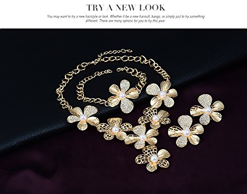 -. Title : African Costume Necklace Set Party 18k Gold Plated Flower Pearl Jewelry Sets