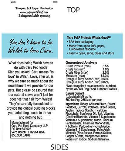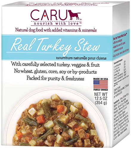-. Binding : Misc. -. Brand : Caru -. Department : P.R.Ice Incorrect -. Feature : Made from only FDA verified human grade ingredients and are processed and handled in accordance with FDA regulations for human food. We offer the only ready-to-eat dog food that is made with 100% human grade ingredients and is prepared in a human food grade facility. Caru looks, smells and tastes more like homemade! -. Label : Caru -. Manufacturer : Caru -. Model : 10851395005029 -. MPN : 10851395005029 -. PackageQuantity : 12 -. PartNumber : 10851395005029 -. ProductGroup : Pet Products -. ProductTypeName : PET_SUPPLIES -. Publisher : Caru -. Size : 12-pack -. Studio : Caru -. Title : Caru Real Turkey Stew - Turkey - 12X12.5 Ounces