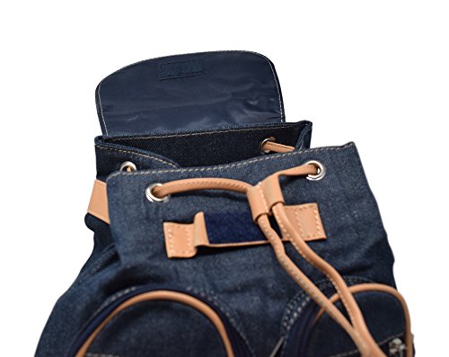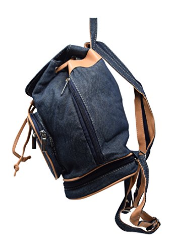 -. Title : Retro Denim Canvas and Vegan Leather Small Casual Backpack Purse Bag