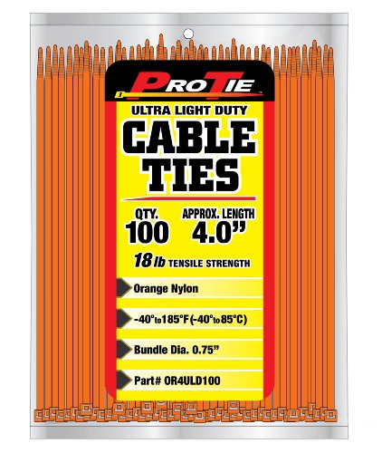 Pro Tie OR4ULD100 4-Inch Orange Ultra Light Duty Color Cable Tie, Orange Nylon, 100-Pack