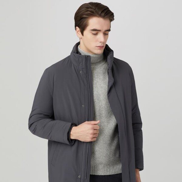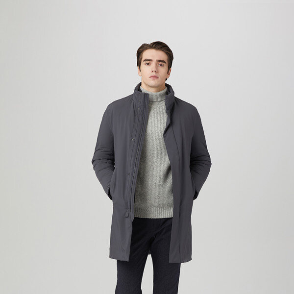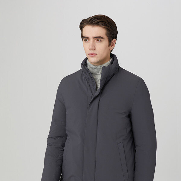 신축성이 좋은 립 조직을 배색한 하이넥 디자인의 솔리드 컬러감이 돋보이며 스냅 버튼 여밈으로 밑단 중심 트임 연출이 가능한 패딩 점퍼입니다
