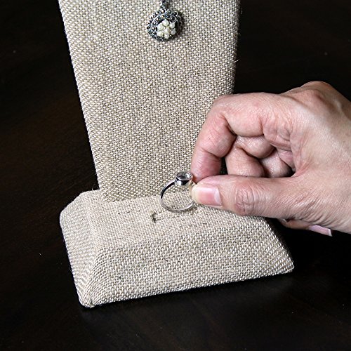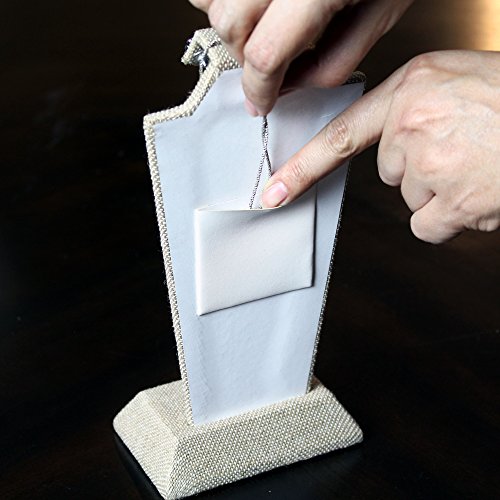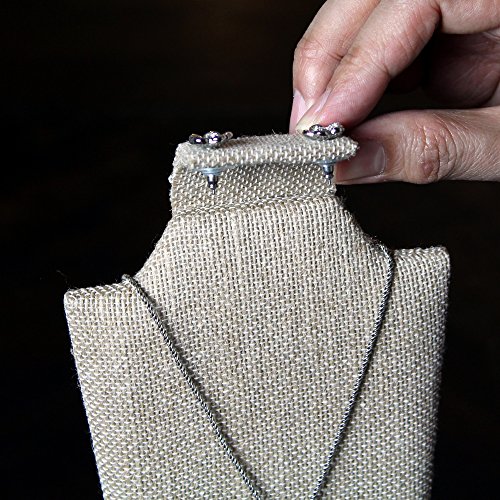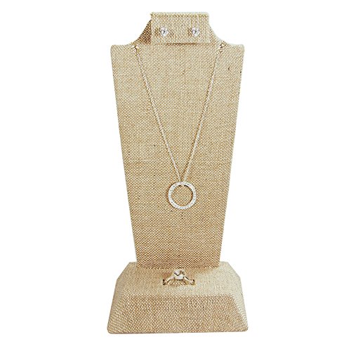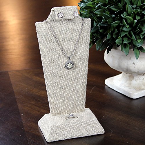-. Feature : Linen covered wooden jewelry bust display. / Necklace, earring, ring combination display. / Add elegance to your jewelry. / Product dimension: 4 1/8"W x 3"D x 9 1/8"H. Color: Linen / Jewelry not included.