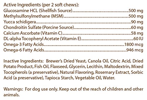 Healthy Breeds Glucosamine double strength joint support soft chews are scientifically formulated with Glucosamine, MSM, Chondroitin, Yucca, and Omega 3 & 6 to provide support to your dog