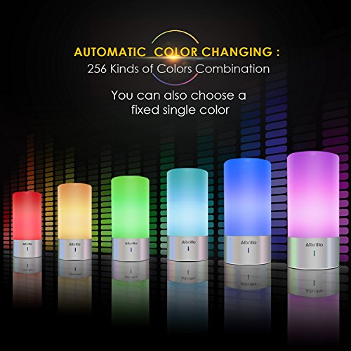 Relaxed eye-caring nightlight: This table lamp comes with white light mode and colorful rgb light choices. Ideal as bedside reading lamps, bedroom table lamps, living room lamps, desk lamp, modern floor lamps, nursery lamp, nightstand lamps, touch table lamps, end table lamps, bedroom lamps, etc. Easy to use(360° touch control): Plug and play. Tap the metal base anywhere to power on / off /switch light mode / adjust brightness / change colors as you want. Dimmable warm white light: The floor lamps can be set to white light for normal Usage, 3 brightness level (high-medium-dim) for your different lighting needs。 rgb color changing lamp: When powered on, long press for 3 seconds to enter into automatic cycle mode with 256 stunning colors, tap it again to stay on the current color. Intelligent design: This white table lamp stands 9" tall, space-saving , rated at 450 lumens for the ultimate ambiance and 35,000 hours lifespan. For everyone: For students in dorms, partygoers at celebrations, families at special events, children, kids bedroom and for relaxing,etc. It fits anyone and looks great everywhere. For any occasion: This touch lamps is ideal as a gift for any occasion. Christmas, birthdays, holidays, wedding, or anniversary, all call for long lasting and treasured gift or present. Specification: Brand: Albrillo light output: 450lm power: 6w max. (White light), 3w (rgb light) voltage: Ac100-240v,50/60hz, dc12v 1a, package content: 1 x led table lamp 1 x power plug( us ) 1 x user manual.Feature