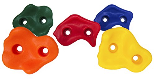 - OUTDOOR FUN: Upgrade any outdoor jungle gym or indoor playground swing set with these 25 rock climbing holds. Every set includes 5 rocks from the 5 different colors and designs to every child’s satisfaction.