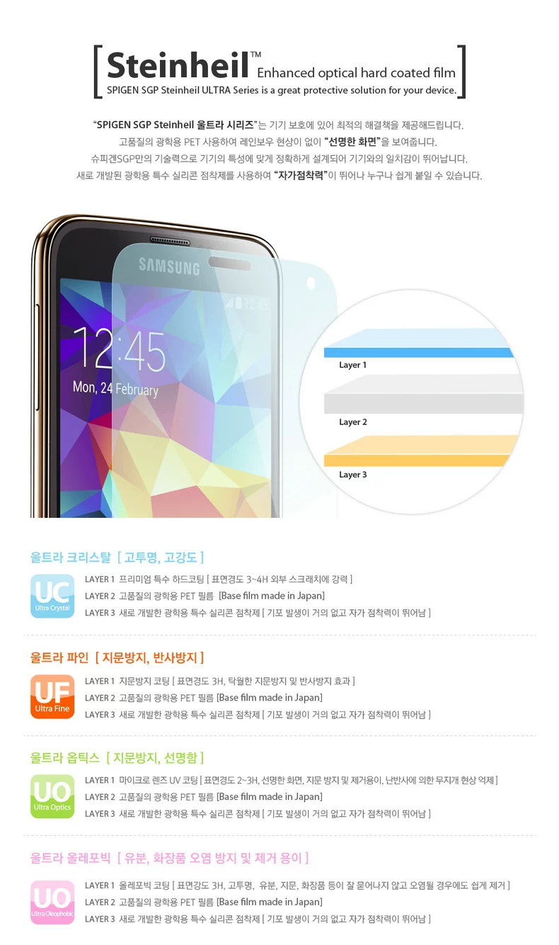 Ultra Oleopobic film features an oil-resistant coating to prevent smudges resulting from oil, cosmetics, and other contaminants. Any marks and fingerprints can be wiped away easily.