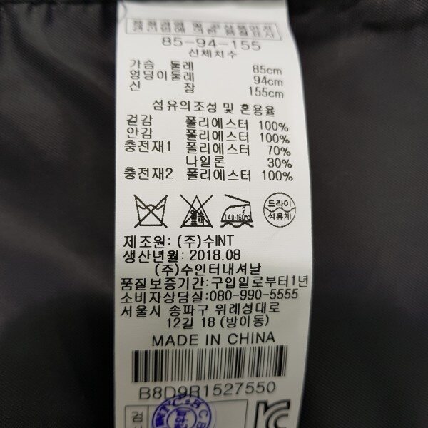 롱 한 길이감의 퀼팅점퍼55기준 총장 90cm