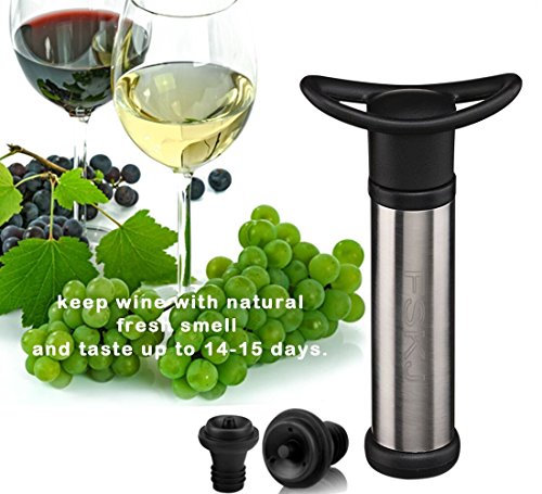 Studio : FSKJ Publisher : FSKJ Product Description Specification: Material: The Wine Saver Vacuum Pump is made from stainless steel material which is more strong and better quality, and can use more smoothly and longer time. And the Bottle Stoppers is made of food grade material which is more environmentally friendly than silicone, environmental protection, non-toxic and safe! It is washable (hand wash or dishwasher). Suitable for: red or white wine, olive oil, truffle oil or any other liquids but sparkling wines.