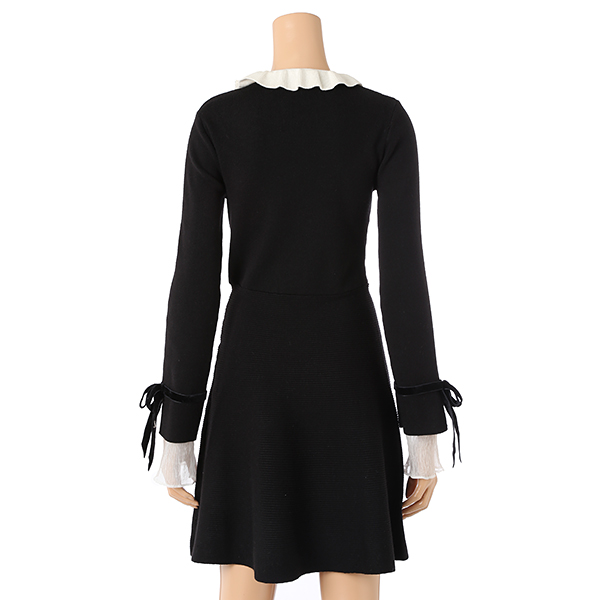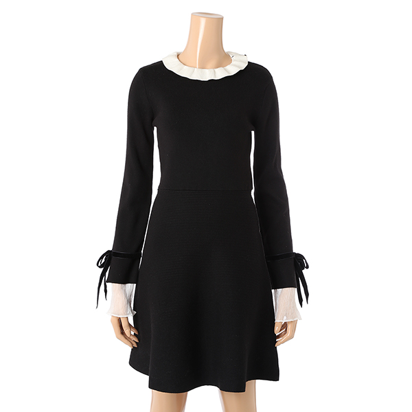 카라 러플 배색 디테일이 여성스럽고 예쁜 니트 원피스입니다.