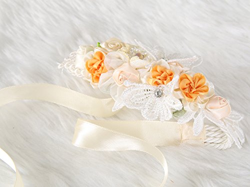 Floral Wrist Corsage butterfly lace Wedding Bridal Bridesmaids (Old rose)