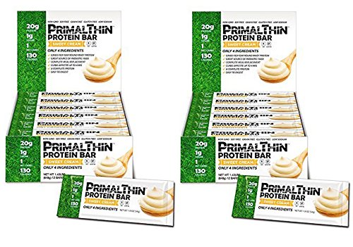 Studio : Julian Bakery Inc Publisher : Julian Bakery Inc Binding : Health and Beauty Product Description Primal ThinTM Protein Bars By Julian Bakery: are the culmination of years of research and development by Julian Bakery. We are proud to offer a low calorie, low sugar, low carb, high protein, gluten free, soy free, non-gmo, non-denatured, cold filtered, pastured, grass-fed whey protein bar that uses the highest quality ingredients. Our Primal ThinTM Protein Bars use organic prebiotic fiber, and have ZERO added sugar with only 2g of naturally occurring sugar. Our bars use monk fruit to sweeten, which is the most allergen friendly sweetener on the market. Our PrimalThinTM Protein Bars are great for those on a diet or looking to skip a meal, as they curb appetite for up to 4 hour (No Stomach Discomfort) by providing 20g of USDA grass-fed whey protein, healthy fats and Prebiotic fiber. Each bar has 130 calories and is low in net carbs with around 2 net carbs per bar (Lab Verified With Labs Mart In Michigan For Nutritional Accuracy). The taste and texture is truly unsurpassed with a creamy sweet taste. The Ideal Protein Bar: 1g Naturally Occurring Sugar (Monk Fruit Sweetened) 20g USDA Organic Grass-Fed Cold Filtered Non-Denatured Whey Protein Gluten Free / Grain Free/ Soy Free / Non-GMO / Low Sodium (Only 30mg Sodium) Only 4 Ingredients 130 Calories Yet Curbs Appetite Up To 4 Hrs With No Bloating! Ideal For The IKDietTM (Low Carb / Low Fat / Low Calorie) Keto / Low Glycemic : Approx 3 18g Of Organic Digestive Resistant Prebiotic Fiber (From Organic Tapioca) That Aids In Improving Digestion (Not Like Typical Fiber) Made In The USA (Oceanside, CA) By Julian Bakery, Inc. No Sugar Alcohols / No Sucralose / No Nuts / No Junk / Delicious Sweet Cream Taste / No Milk Protein Isolate That Typically Triggers Mucus (24 Bars Total) (2 Boxes Of 12 Bars) 0