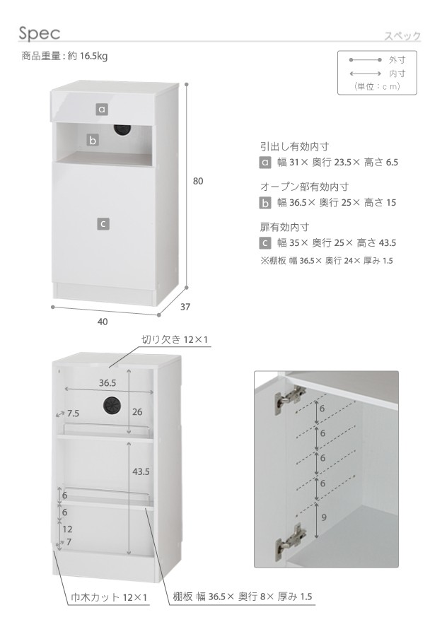 サイズ(cm):幅40x奥行37x高さ80cm・約16.5kg