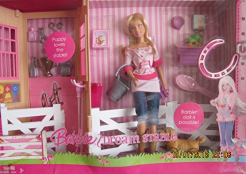 -. Title : Barbie DREAM STABLE & DOLL Playset w Posable BARBIE Doll, STABLE Entry & Fences, DOG, & Lots MORE! (2007)