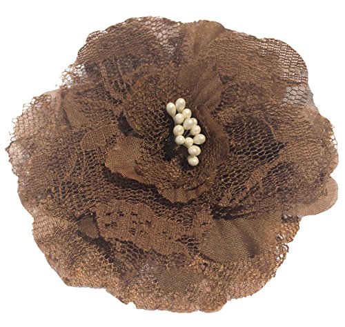 Cuteque International Victorian Lace Rose with Plastic Center Pearl Stamens, 4-Inch, Chocolate, 3-Pack