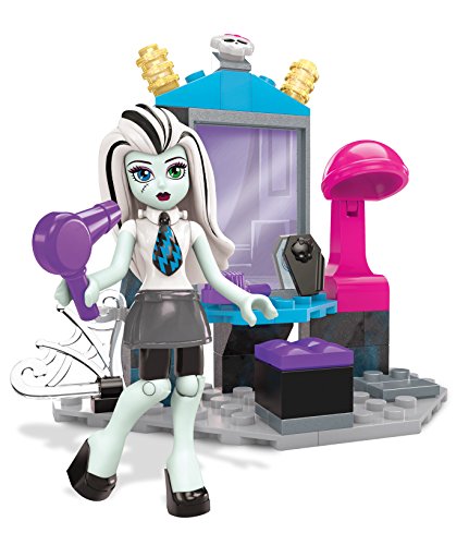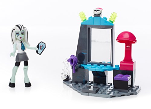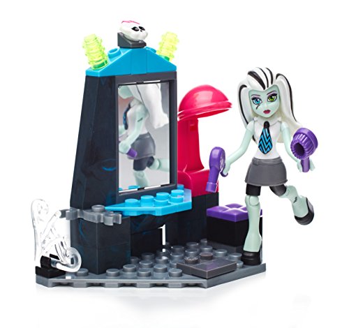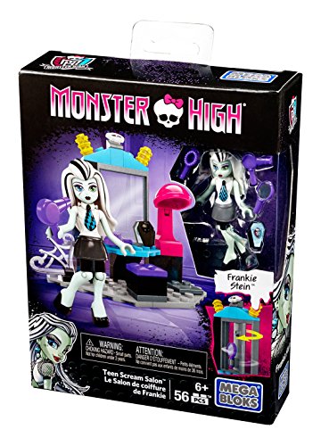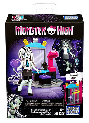 -. Binding : Toy -. Brand : Mega Bloks -. EAN : 0887961318906 -. Feature : Buildable vanity with mirror that spins to reveal hair accessories / One highly detailed, super-poseable Frankie Stein mini fashion figure with iCoffin and a unique look / Accessories include a hair brush and hair dryer / Combine with other Mega Bloks Monster High playsets / Build your own freaky fabulous world! -. Label : Mattel -. Manufacturer : Mattel -. Model : DPK35 -. MPN : DPK35 -. PackageQuantity : 1 -. PartNumber : DPK35 -. ProductGroup : Toy -. ProductTypeName : TOYS_AND_GAMES -. Publisher : Mattel -. ReleaseDate : 2016-04-27 -. Studio : Mattel -. Title : Mega Bloks Monster High School Teen Scream Salon Set -. UPC : 887961318906 -. Warranty : 1 year warranty against manufacturer defects