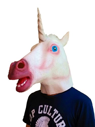-. Feature : Name: Gmask Unicorn Head Mask / Manufacturer Model: GM001 / Material: 100% Natural Latex from Malaysia / Size: Fits most adult heads / How do you see? Through the unicorn's mouth holes and the nose holes