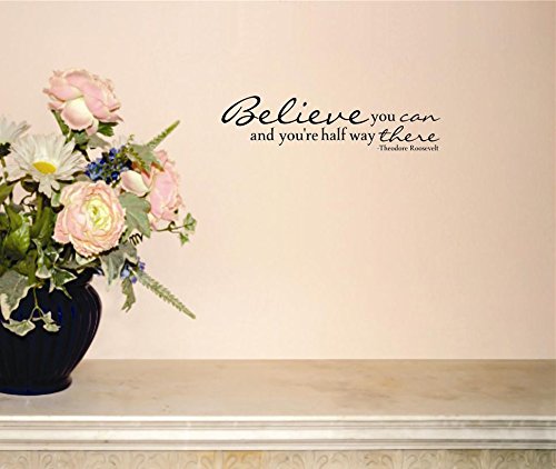 Design with Vinyl Moti 1768 2 Believe You Can and You're Half Way There Theodore Roosevelt Quote Peel & Stick Wall Sticker Decal, 8" x 32", Black