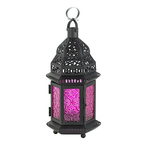 -. Title : Fuchsia Glass Moroccan Style Lantern