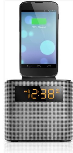 Start your day fully charged with AJT3300. This clock radio doubles as a wireless speaker that streams music from any Bluetooth device. With the by-packed interchangeable cradles, it charges any smartphone, iPhone / Android, while you sleep.