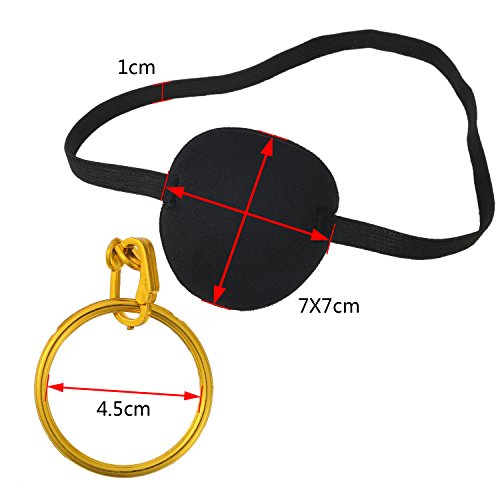 Easy to use: the pirate patch's rope has elastic to wear around head, the earring can clip on your ear