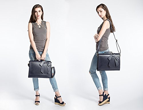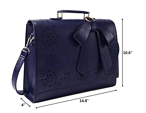 [Description] High Quality Faux leather messenger bag with durable handle. Fully lined with soft fabric_ zippered pockets as well as a zippered main compartment. Separate padded space for a 14`` laptop Product Dimensions: 14.8 x 10.6 x 4 inches (L x H x W); the lenghth of shoulder strap is 50cm~140cm Internal Structure: 1 large main compartment_ 1 small zippered compartment_ 2 small open compartments. This messenger bag is very durable and can hold all of your necessities for convenient_ everyday use Design: This bag has a stylish and classic look. Vintage gold-tone metal hardware gives this bag the perfect look while maintaining structural durability to last Multifunctional: With 4 great colors to choose from_ this bag is ready to accompany you at any event_ the office_ shopping_ etc. Easy to match and stunning to see_ you``ll take it everywhere Dimensions: 14.8 x 10.6 x 4 inches (L x H x W); Weight: 2.2LB Made of high quality PU leather with durable top handle. Adjustable and detachable shoulder strap with 20`` - 55```` drop. Flap top with strong magnets snaps closures; The bow in the front adds a nice feminine touch to a professional looking bag. Large capacity: 1 large compartment_ 2 small slip compartments_ 1 small zippered compartment_ 1 padded compartment for 13-14 inch laptop or a tablet with a Velcro strap closure Ideal for work_ business trip_ meeting_ school_ office job_ interviews or daily use. Carry as a briefcase_ handbag_ cross body purse_ shoulder bag for hands-free. Perfect gift choice.