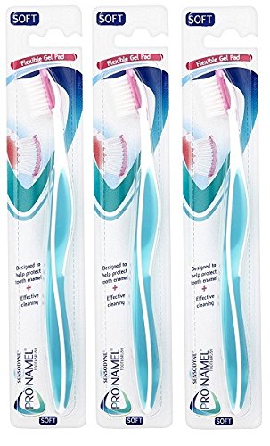 -. Binding : Misc. -. Brand : Sensodyne -. EAN : 5053163840803 -. Feature : Designed to help protect tooth enamel / Effective cleaning specially designed for people with sensitive teeth / Patented flexible gel pad that holds the brush bristles to provide effective cleaning / Micro-fine bristle ends are gentle on the tooth enamel -. IsAdultProduct : 0 -. Label : Sensodyne -. Manufacturer : Sensodyne -. ProductGroup : Beauty -. ProductTypeName : BEAUTY -. Publisher : Sensodyne -. Studio : Sensodyne -. Title : Sensodyne Three Packs Of Pronamel Toothbrush [Personal Care]