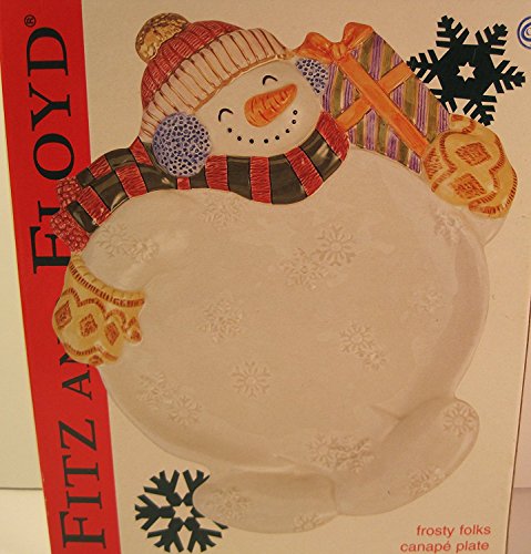 Fitz and Floyd Christmas Porcelain Snowman Plate, Appetizer / Petits Fours, 10 Inches
