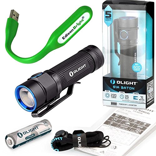 Olight S1A Baton Cree LED 600 Lumens Flashlight With 1.5V AA ithium Iron Battery bundle with EdisonBright USB poweread reading light
