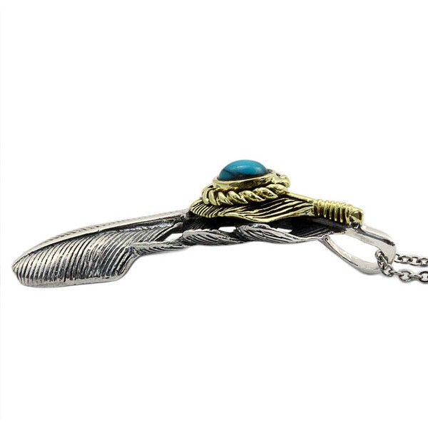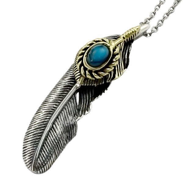 ターコイズカラーの石がポイントのRoyal Jokerカントリーウィングペンダント。ポイントのターコイズカラーのストーンの脇をゴールドメッキを施し高級感をUP。ワイルドなウィング(羽)はネイティブアメリカンのモチーフです。カントリーファッションにもあうアイテムである。本物のシルバーだから出せる質感が堪能できるアイテムです。専用のケースが無料で付属するので、プレゼント・ギフトにとってもオススメです。