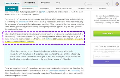 NOOTROPICS STACK: L-THEANINE (200mg) - A Focus Enhancer. CAFFEINE (200mg) DOUBLE the amount found in the Leading brands for more Energy and Alertness. This Dosage has been tested in Human Clinical Trials and proven to be an Effective Energy Booster and to Improve Mental Sharpness.