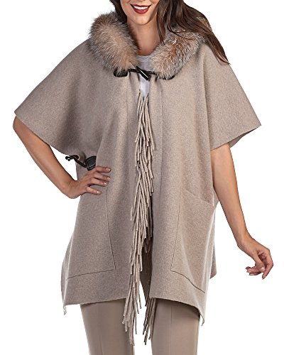 Binding : Apparel Product Description When you want to make an entrance, our Wool Wrap Poncho with Fox Fur Hood Trim - In Brown stands out. The Wool shell is adorned with a matching hood and features a trim of Silver Fur dyed brown. Toggle closures allow you to affix this style to your figure. 0