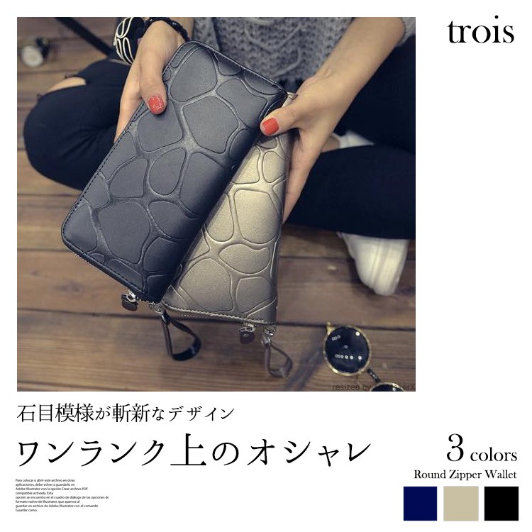 【商品名】長財布 ラウンドファスナー【商品説明】セレブ風ウォレット。石目模様が斬新なデザイン、今年大流行間違いなし。オシャレで高級感のあるウォレットこれ1つでおしゃれさんに。大容量なのでラクラクおでかけ。スマホもゆったり入る大きめサイズ。シルバカラーなので程よいアクセントに。男性でも女性でも。■仕様サイズ:10cm×21cmカード収納ポケット×11小銭入れ×1
