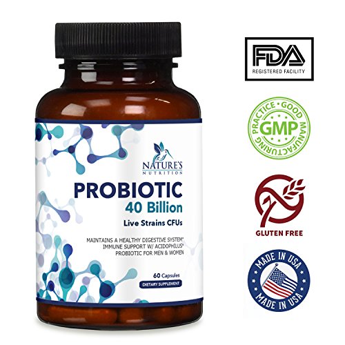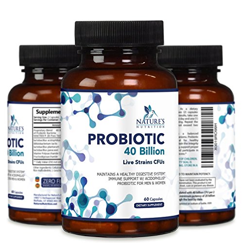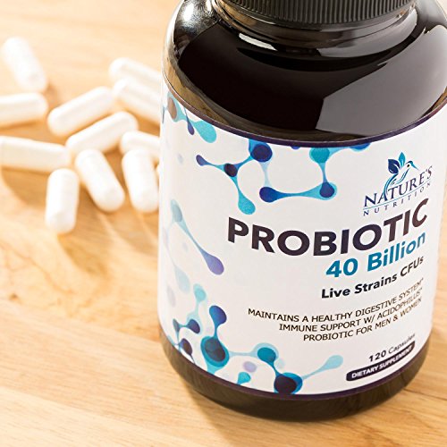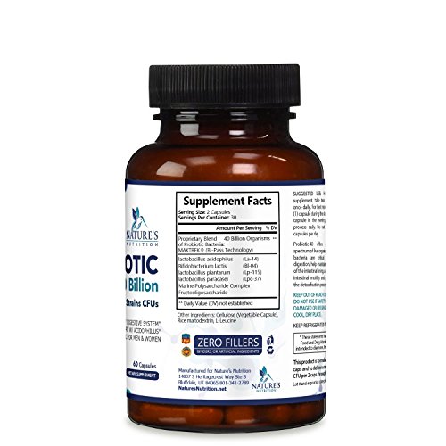 Nature's Nutrition probiotic supplements are a proprietary blend containing 40 Billion live strains CFUs from 4 strains of bacteria, including Lactobacillus Acidophilus, Bifidobacterium Lactis, Lactobcillus Plantarum, and Lactobacillus Paracasei. Additionally, plant starches are included that help with delivery and absorption. This probiotic supplement offers a balanced spectrum of live organisms and contributes to the success as one of the best probiotic supplement available today.