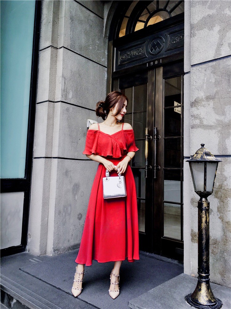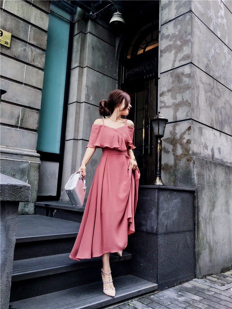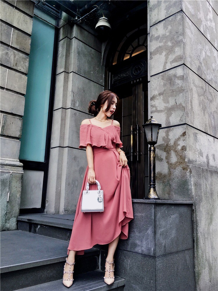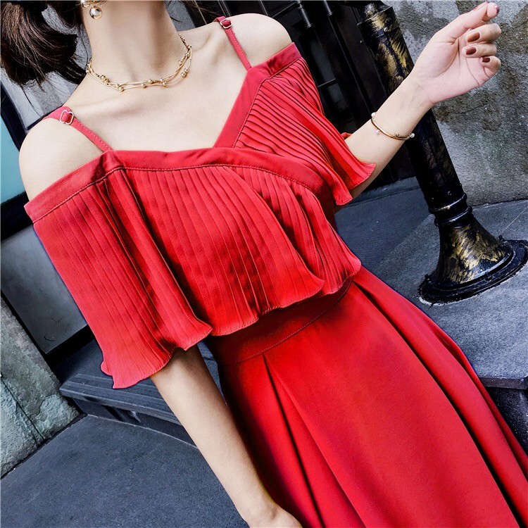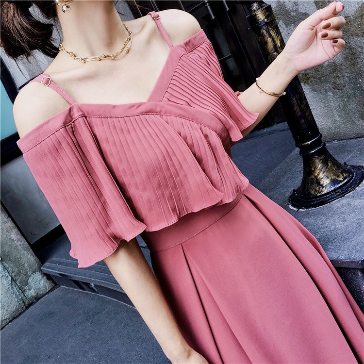 ストラップショルダーでオープンな肩見せはとってもフェミニン♪