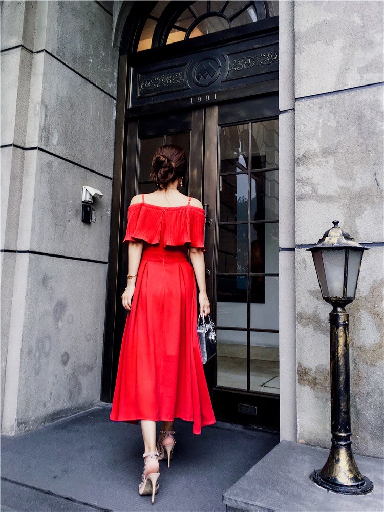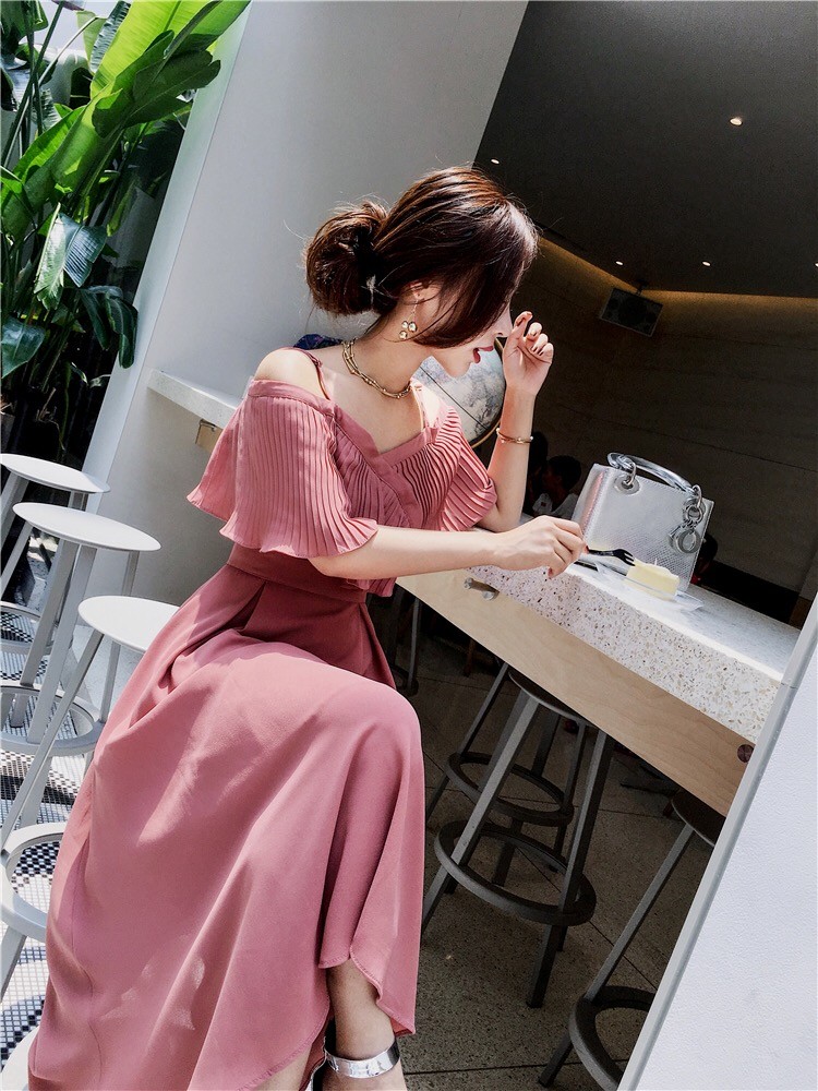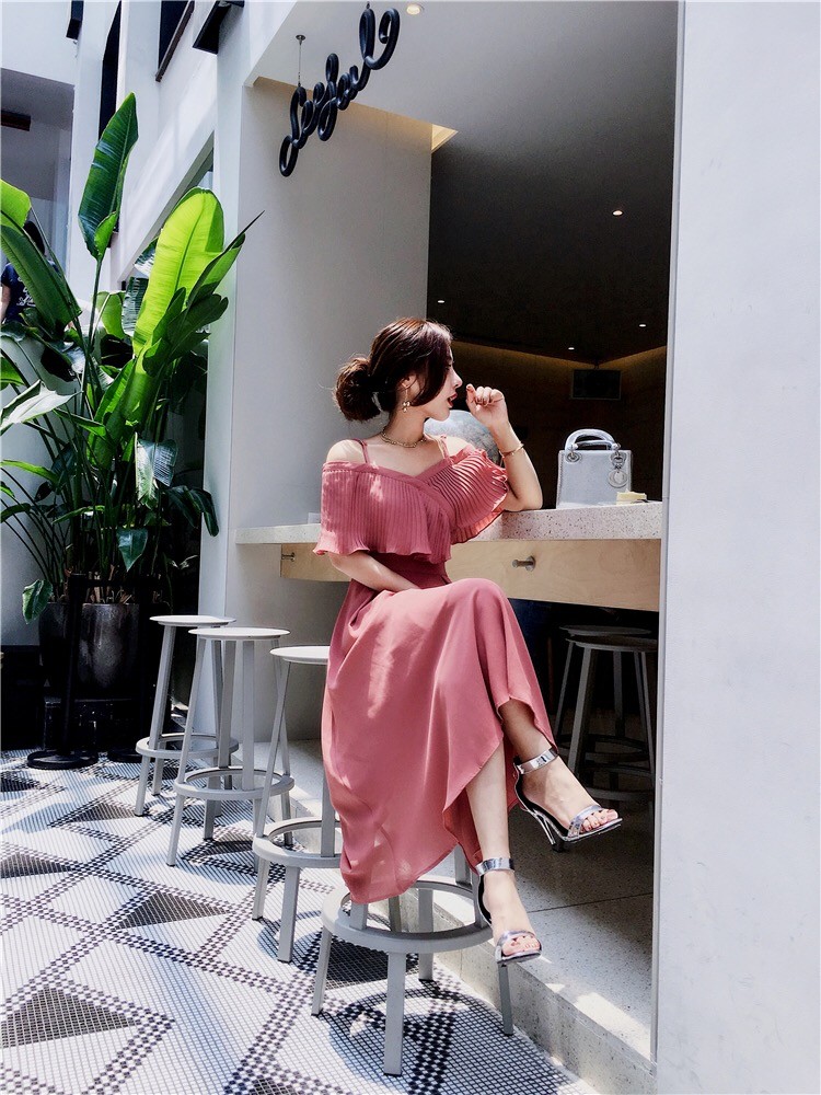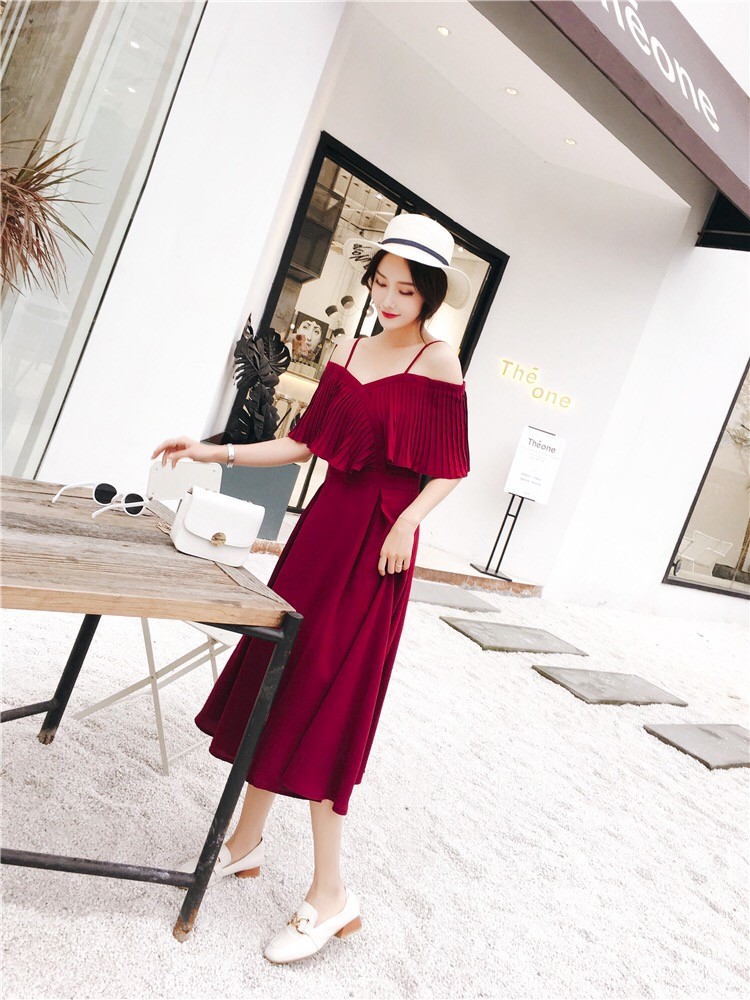 ストラップショルダーでオープンな肩見せはとってもフェミニン♪