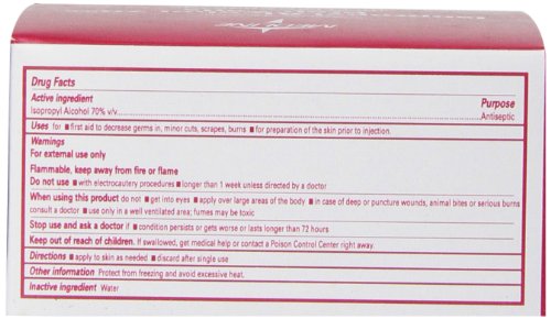 The soft, absorbent, non-woven pads are saturated with 70% isopropyl alcohol