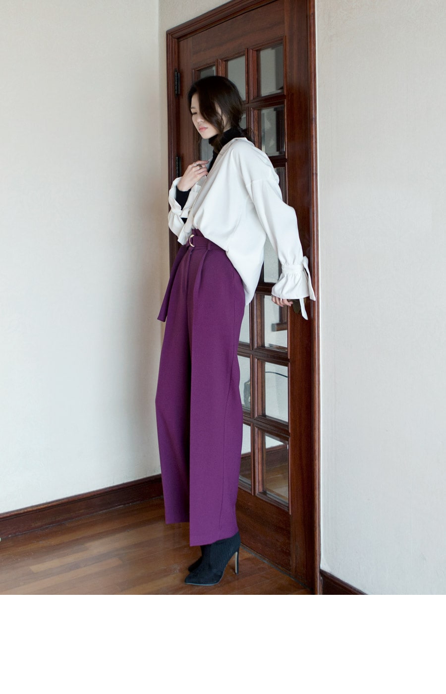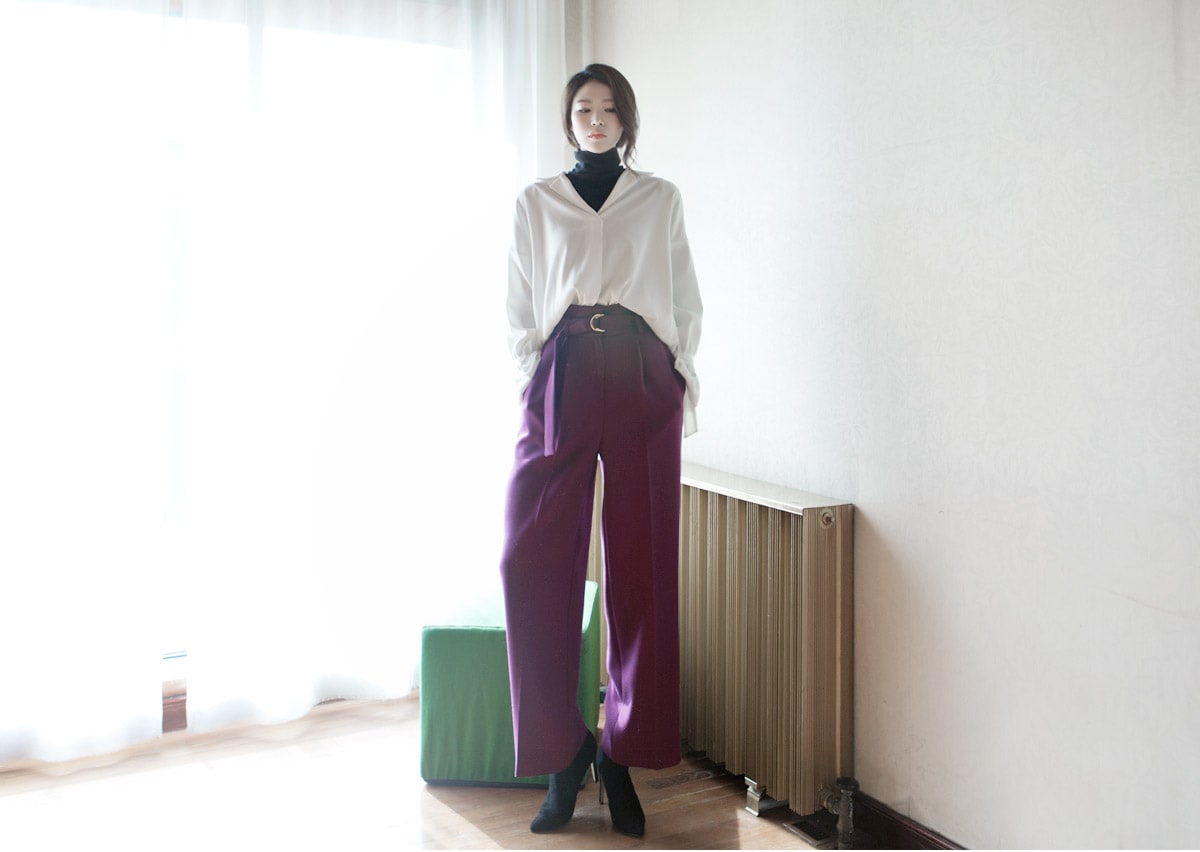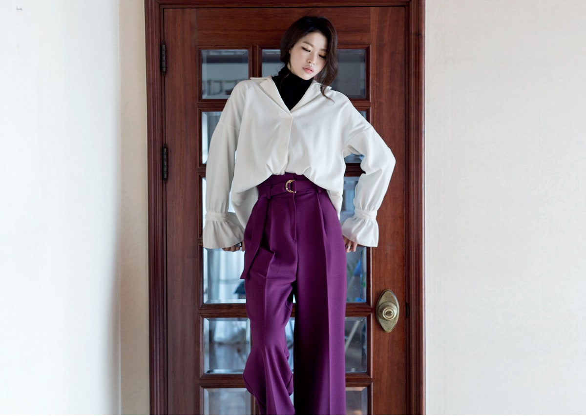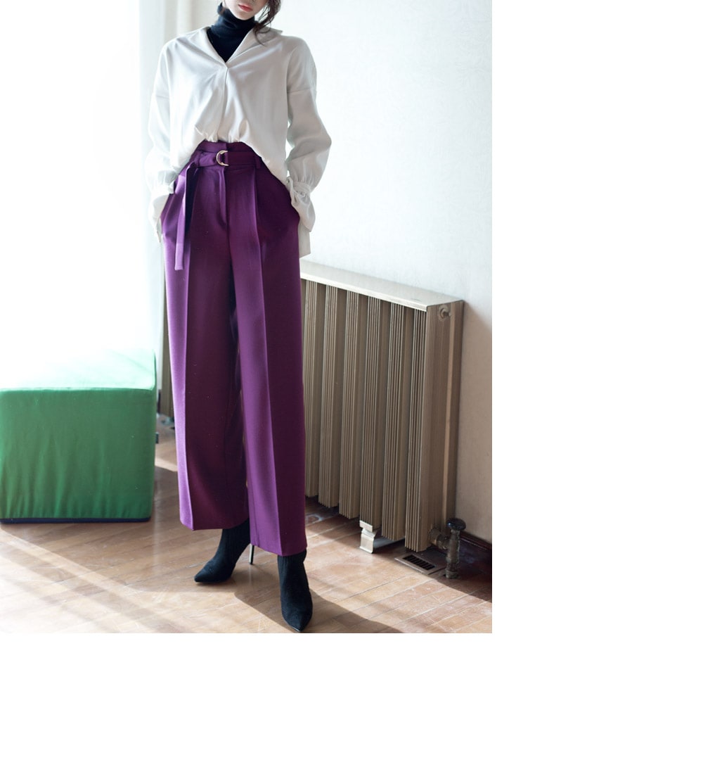 P1812 리버 벨티드 하이웨스트 슬랙스(벨트set) Purple