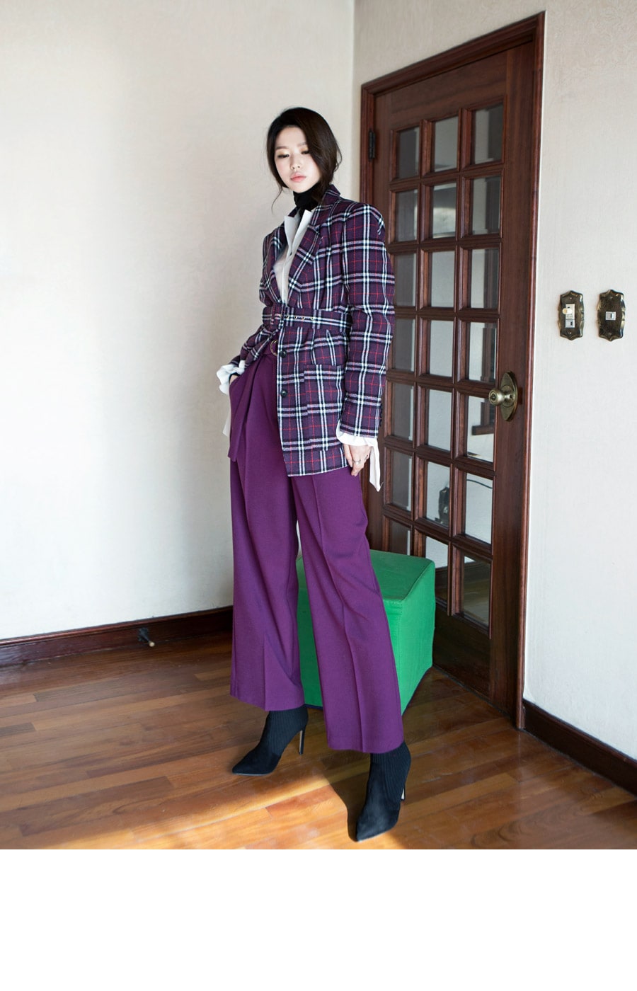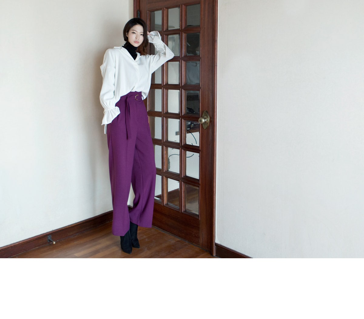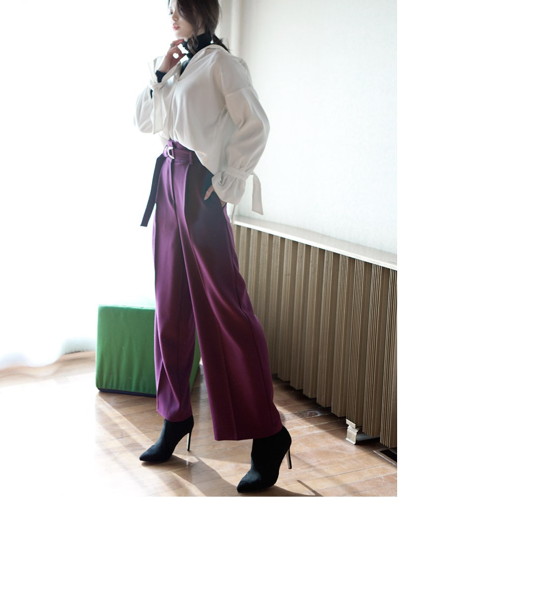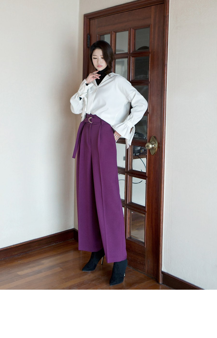 P1812 리버 벨티드 하이웨스트 슬랙스(벨트set) Purple
