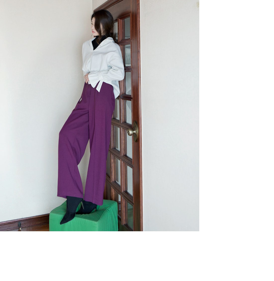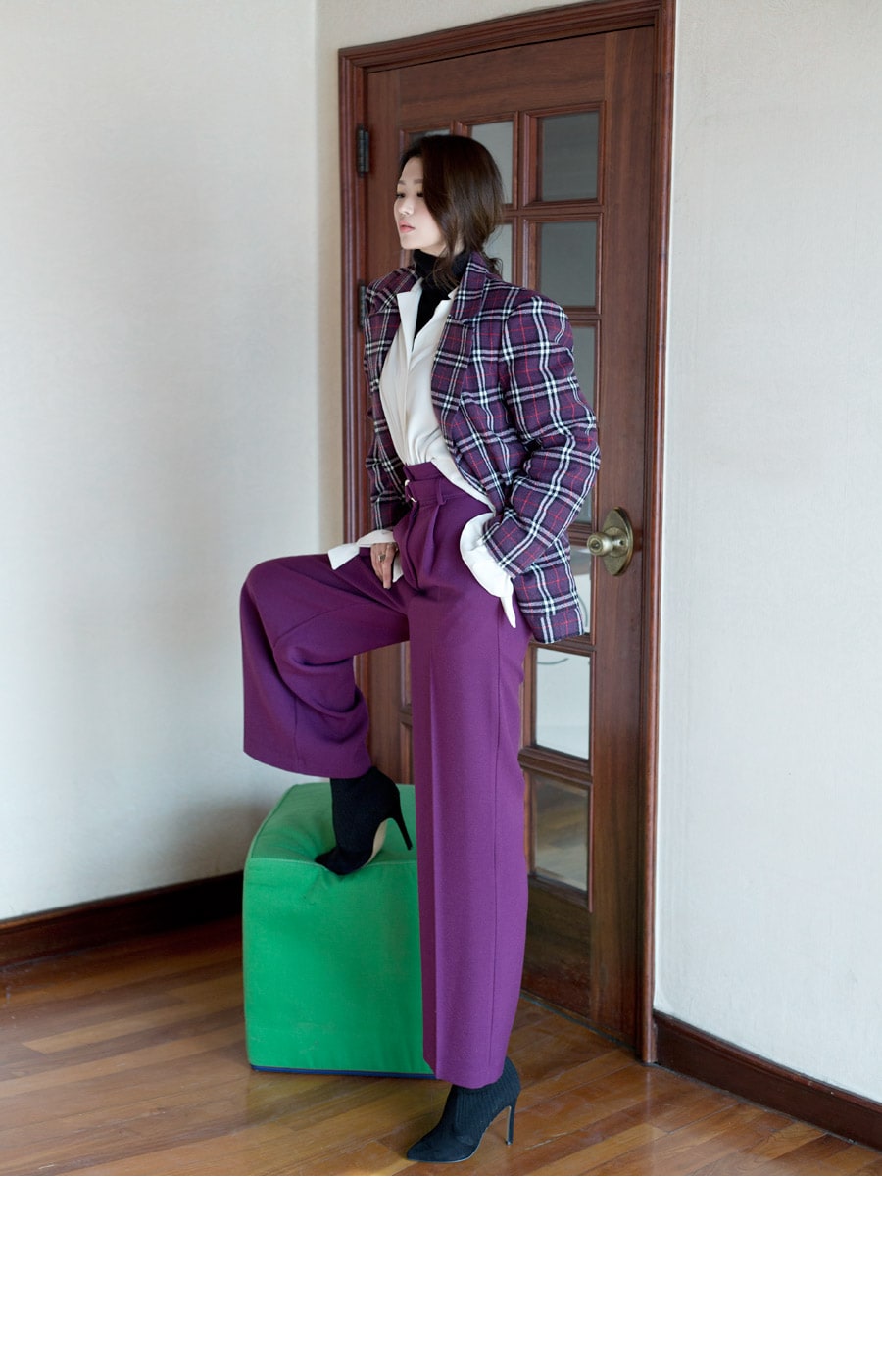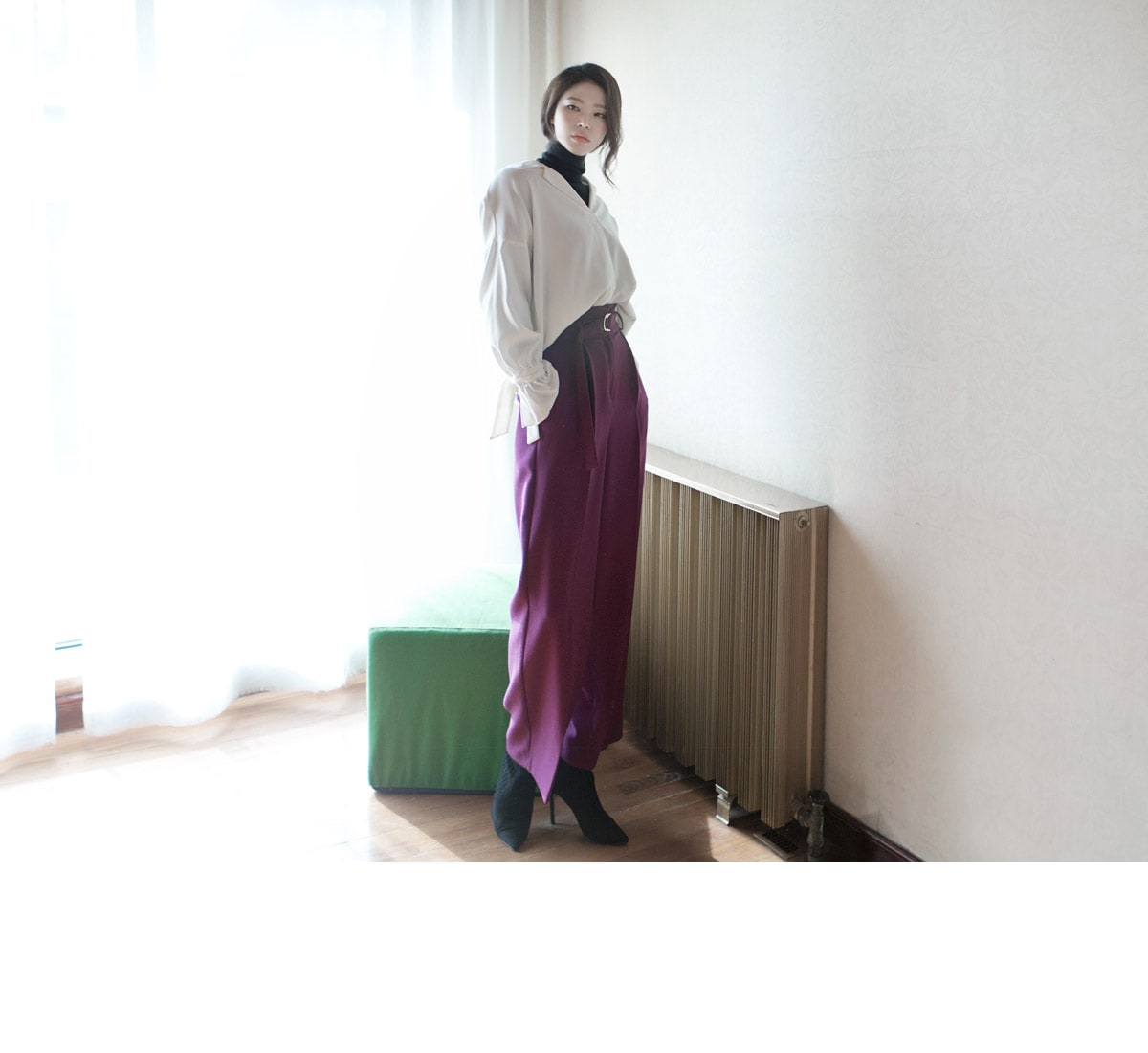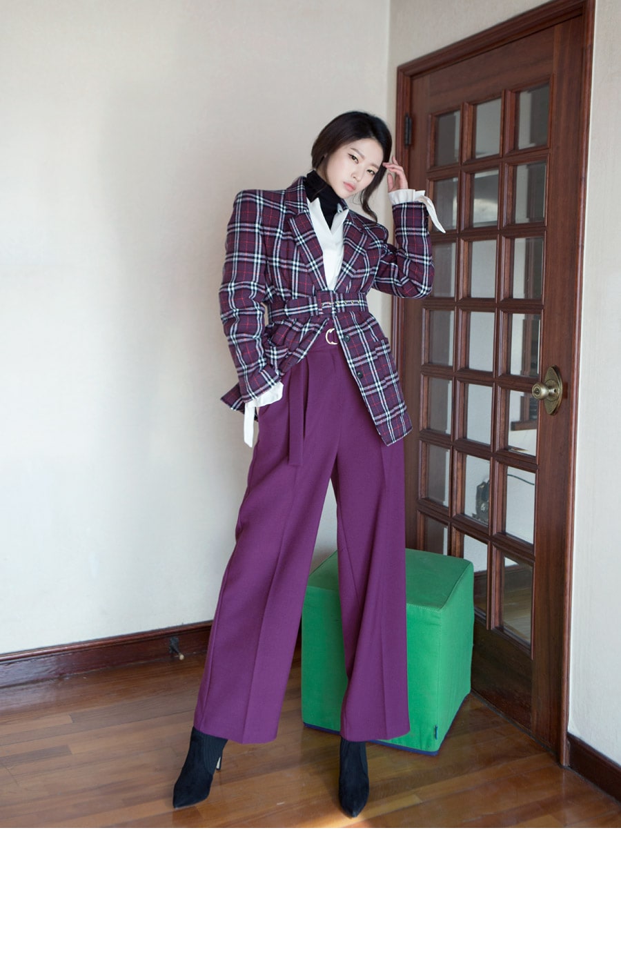 P1812 리버 벨티드 하이웨스트 슬랙스(벨트set) Purple