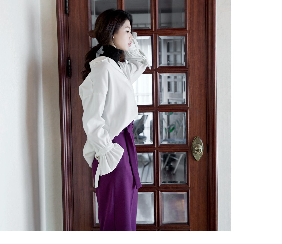 B2151 프렌치 커프스 리본 블라우스 Ivory