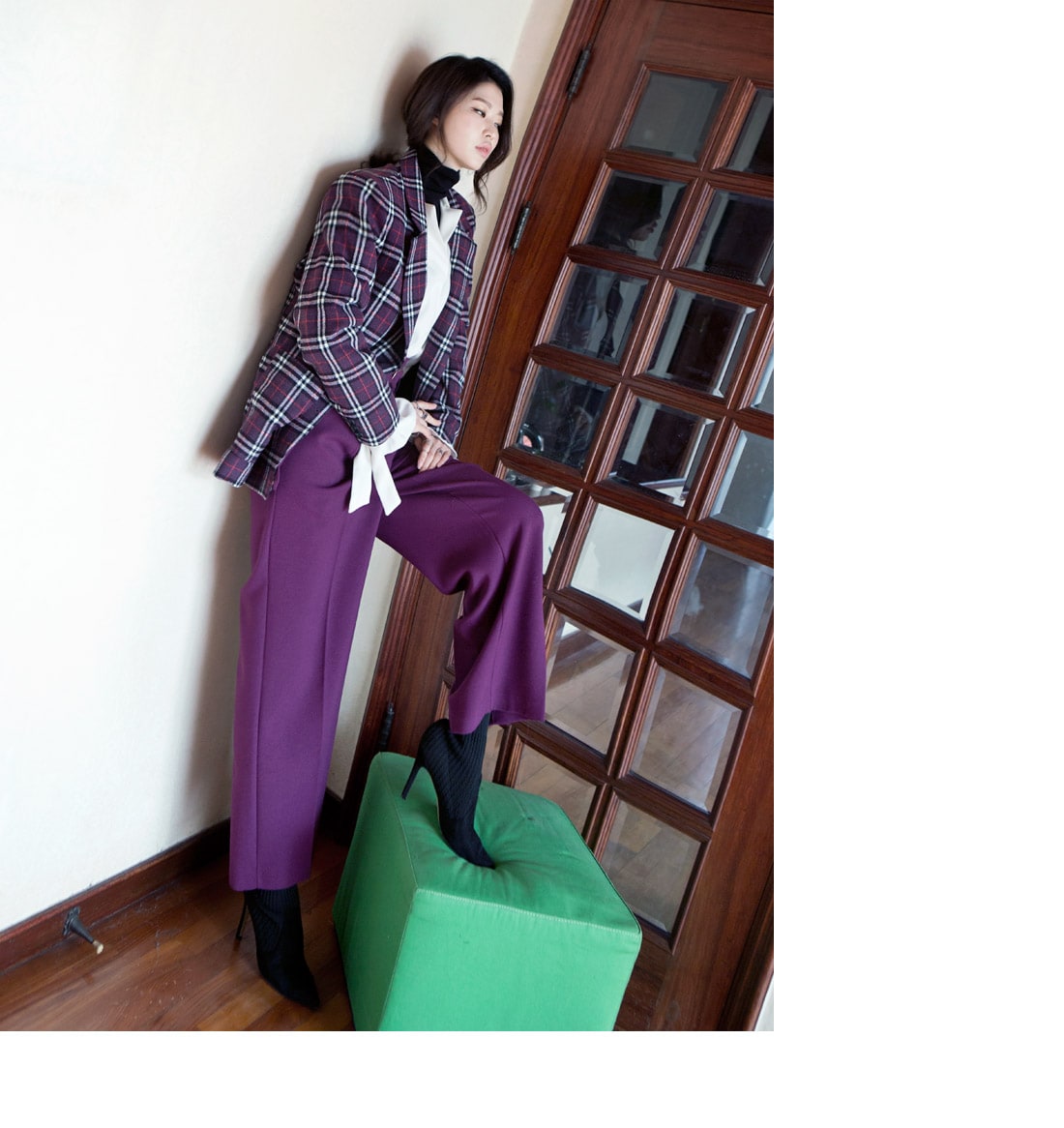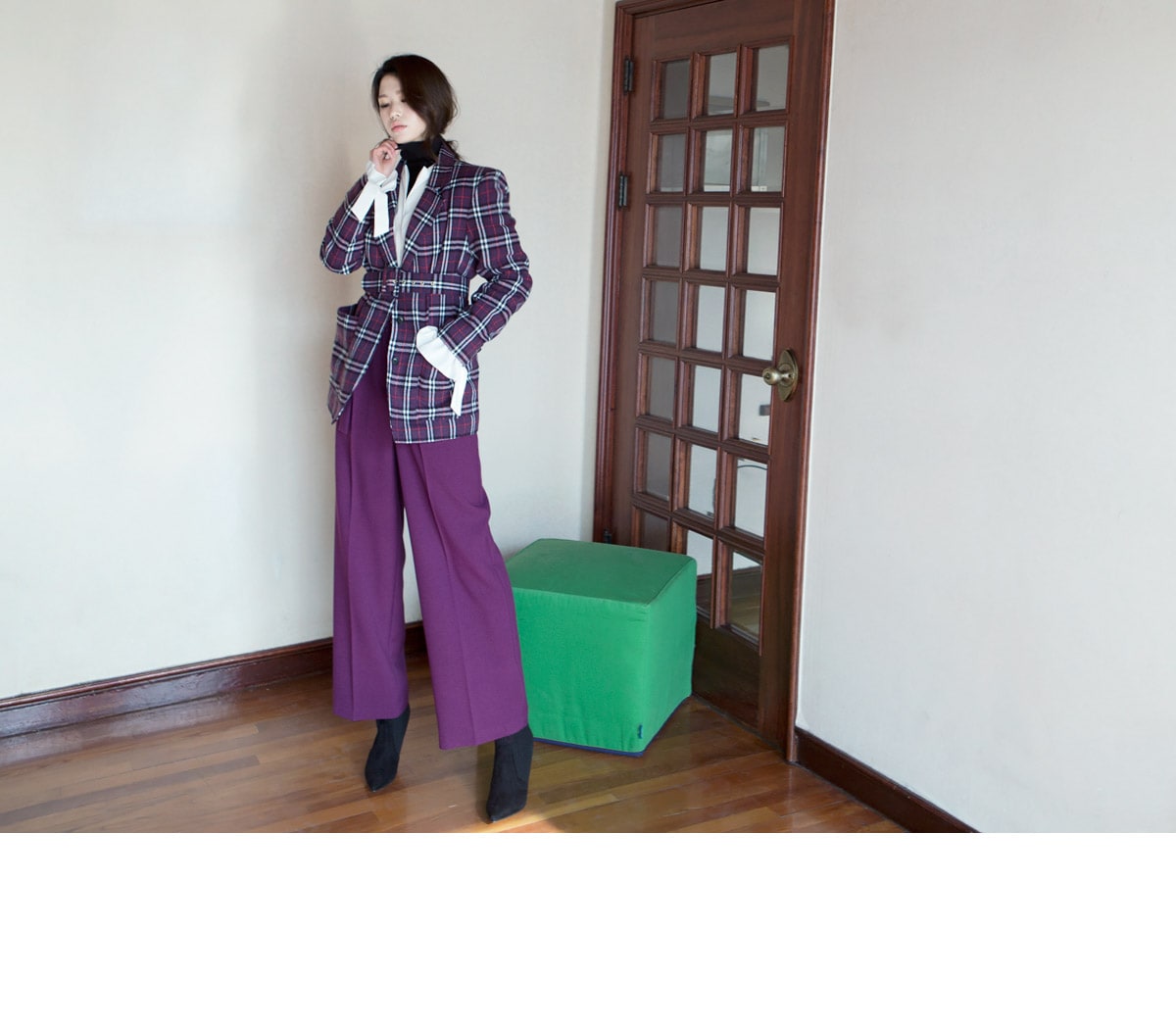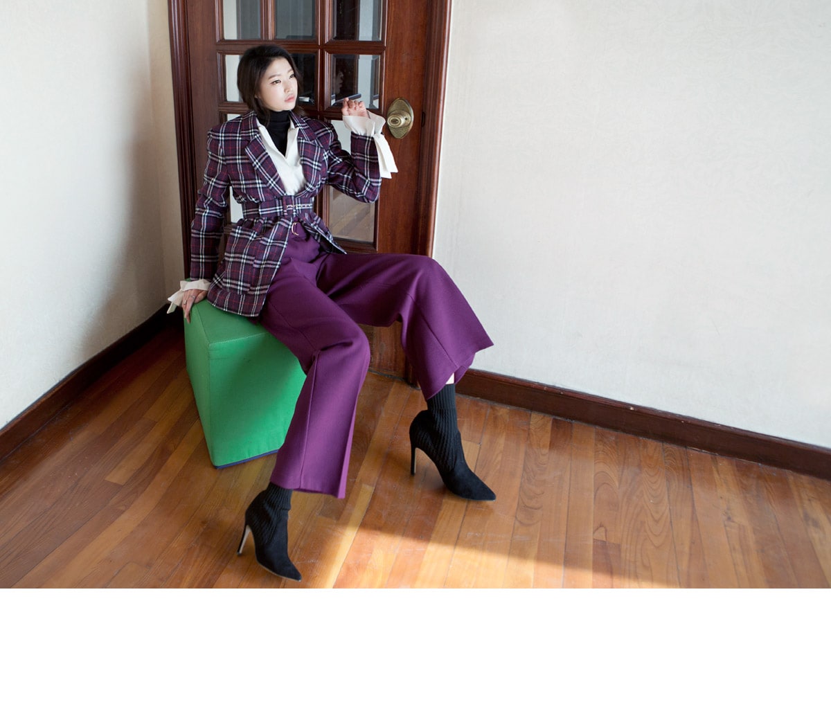 J-4819 로이츠 체크믹스 누빔자켓(벨트set) Purple mix